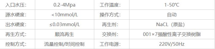 软化水设备技术参数